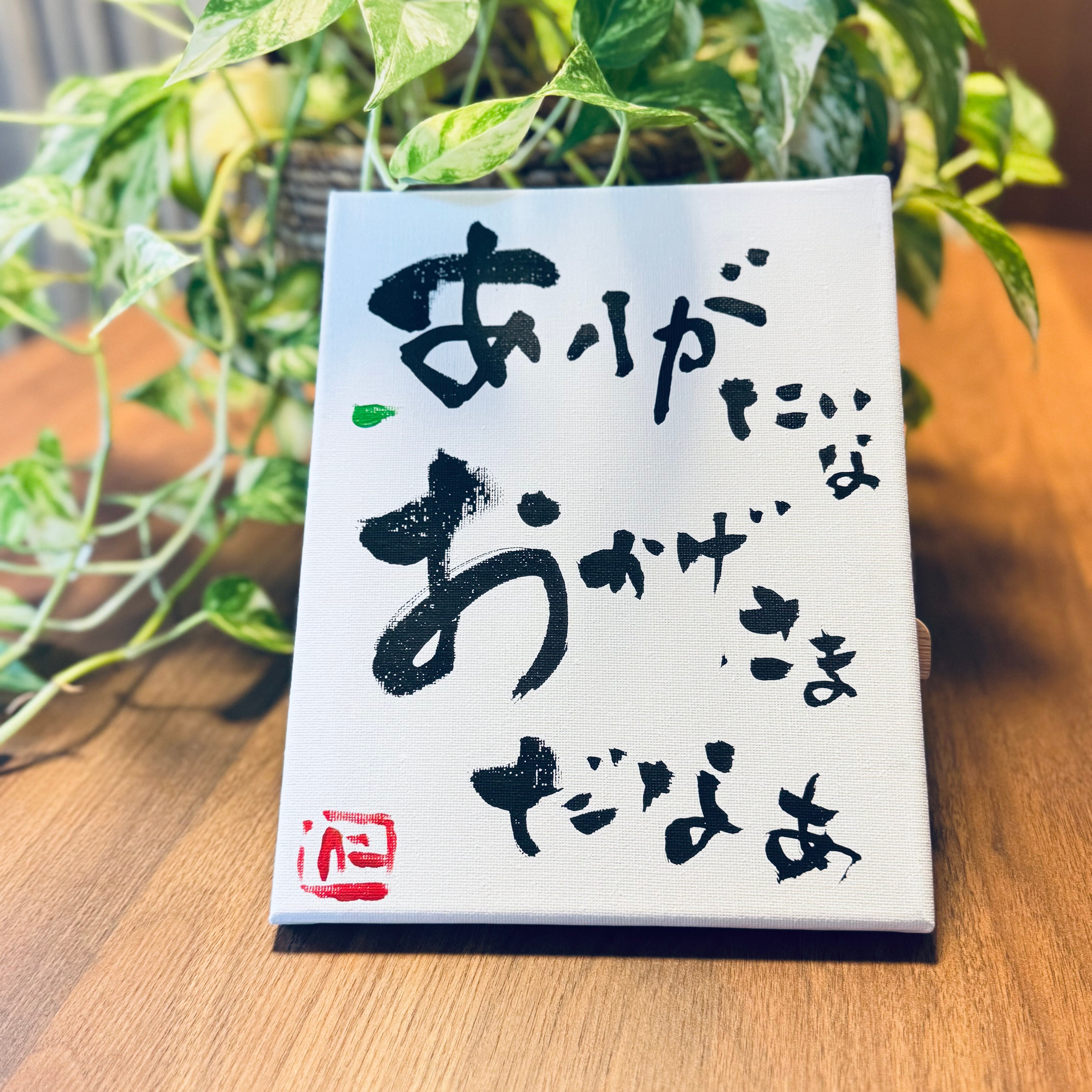 白いキャンバスに、Jinからあふれ出る魔法の言葉を手書きしています。